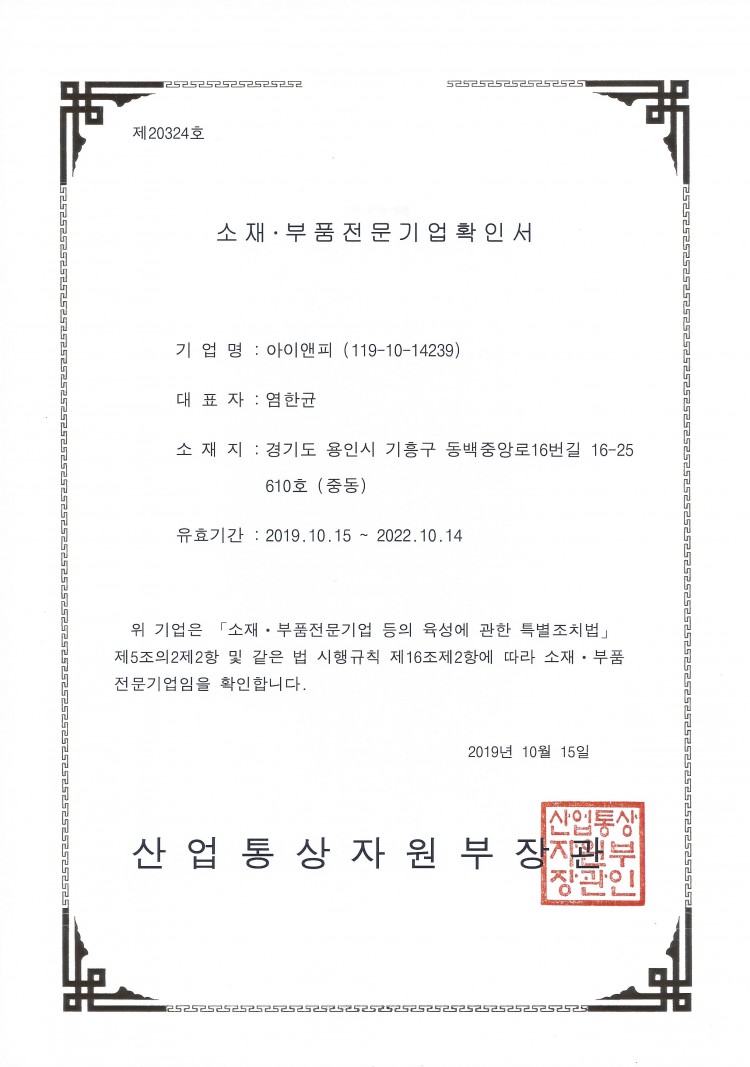 소재 · 부품 전문기업 확인서 페이지 정보 작성자 관리자 댓글 0건 조회 923회 작성일 20-05-11 16:58 이전글 다음글 목록 본문 소재 · 부품 전문기업 확인서 목록 댓글목록 댓글목록 등록된 댓글이 없습니다.