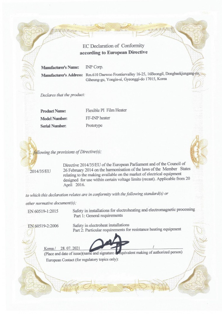 CE 인증 Flexible PI film heater 페이지 정보 작성자 관리자 댓글 0건 조회 527회 작성일 22-01-28 11:09 이전글 다음글 목록 본문 CE 인증 Flexible PI film heater 목록 댓글목록 댓글목록 등록된 댓글이 없습니다.